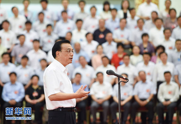 中共中央政治局常委、國(guó)務(wù)院總理李克強(qiáng)在會(huì)前親切接見(jiàn)與會(huì)全體代表并作重要講話(huà)。(圖片來(lái)源:新華社)